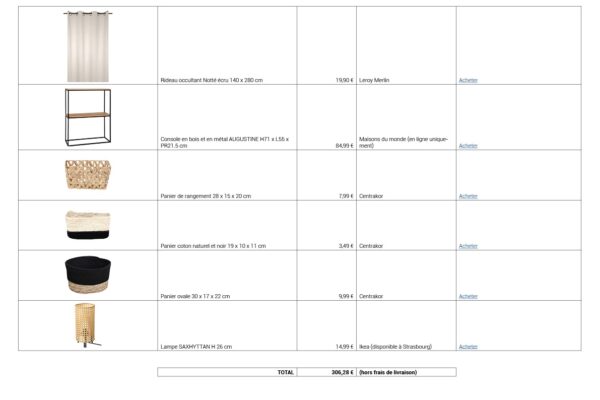 - L’emménagement se précise : je vous accompagne dans de l’achat du mobilier et de la décoration (en magasin ou en ligne). Vous n’aurez plus qu’à poser vos valises et profiter de votre nouvel intérieur !