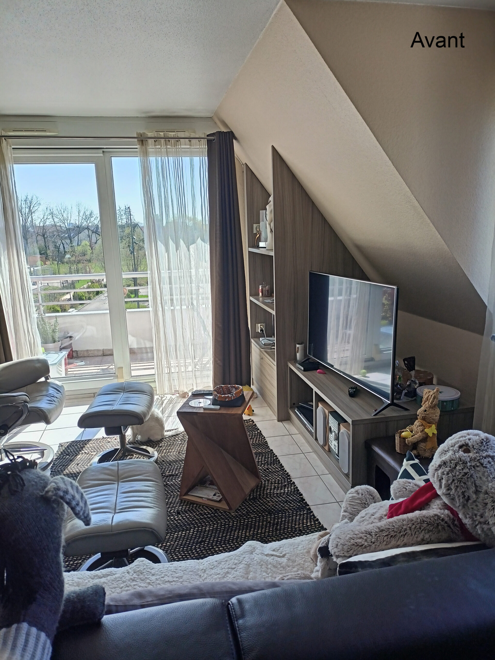 Je leur ai donc proposé dans un premier temps un terracotta assez clair, puis un corail et ils ont finalement choisi ce rose clair. Un choix audacieux pour une pièce de vie ! Mais cette couleur contraste bien avec leurs chaises en velours vert/gris et leurs jolis meubles en bois. Elle rend aussi la pièce beaucoup plus chaleureuse !